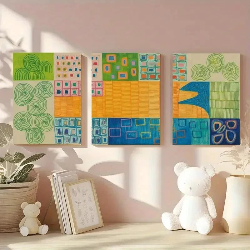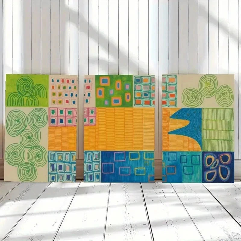 3pcs Swirls Circles & Geometric Patterns Metal Print Ready to Hang Art