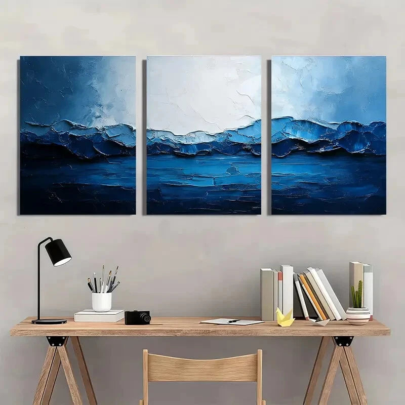 3pcs Texture Art Blue Abstract Knife Painting Metal Print Ready to Hang Art