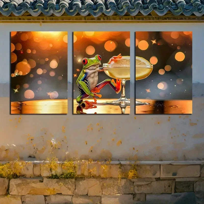3pcs Tropical Frog Cocktail Beach Themed Metal Print Ready to Hang Art