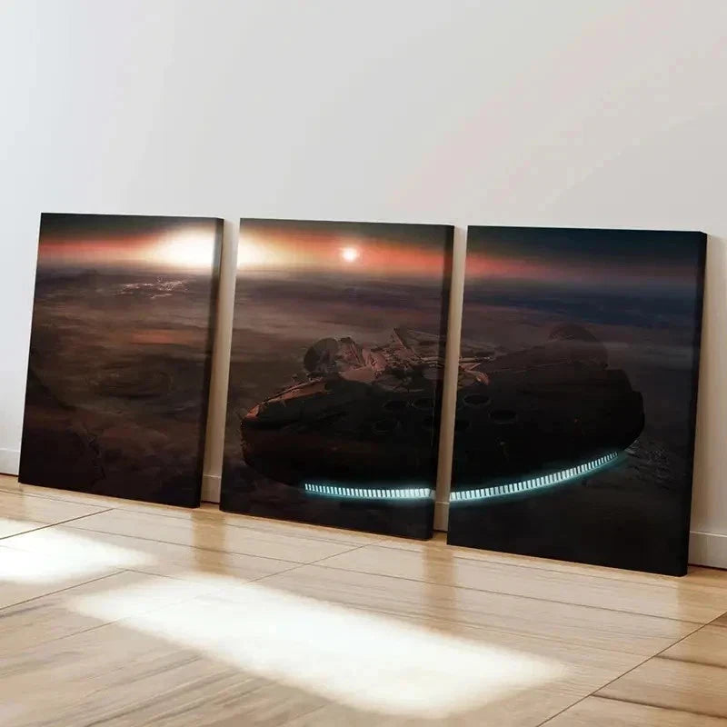 3pcs Universe Space Spaceship Movie Decor Wall Art Set Canvas Framed 40x60cm - High Quality Print 100% Australian Made Wall Canvas Ready to Hang