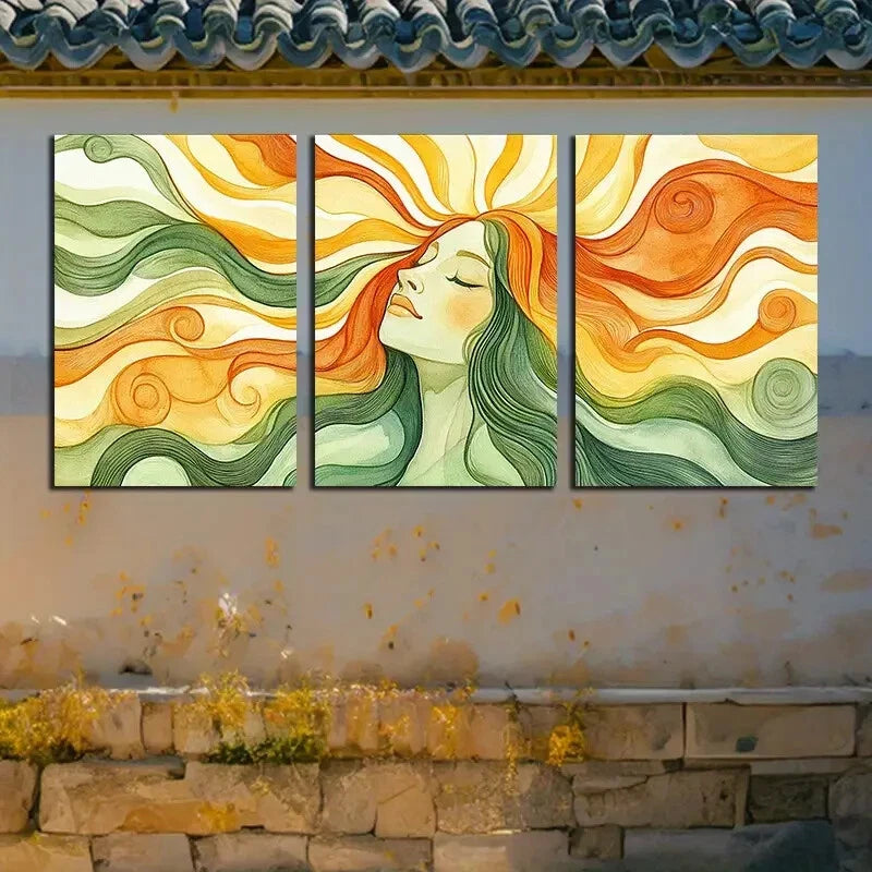 3pcs Vibrant Abstract Female Portrait Illustration Metal Print Ready to Hang Art