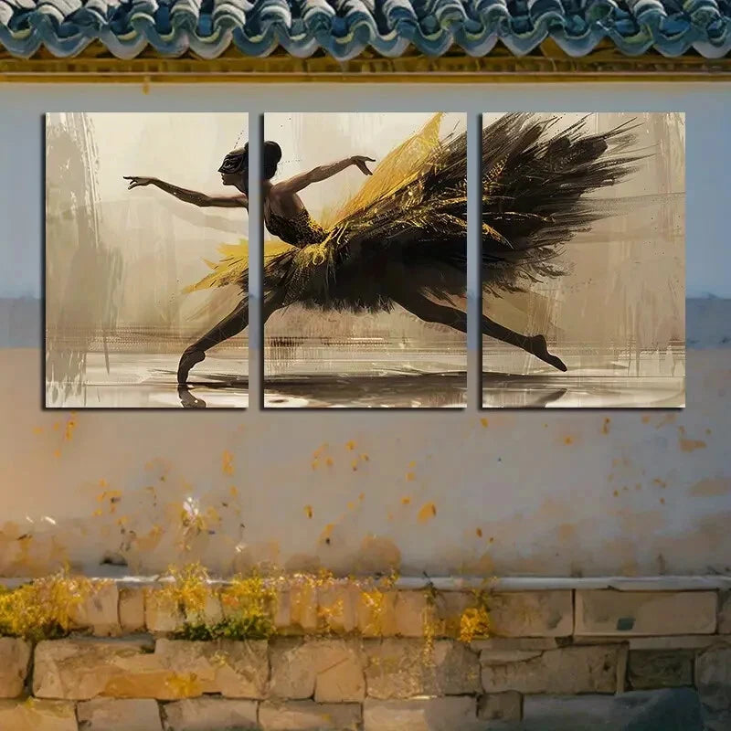 3pcs Vibrant Ballet Dancer Illustration Metal Print Ready to Hang Art