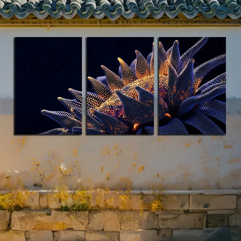 3pcs Vibrant Beautiful Sunflowers Illustration Metal Print Ready to Hang Art