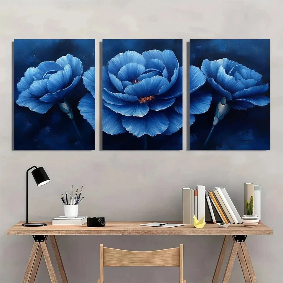 3pcs Vibrant Blue Modern Fantasy Nature Metal Print Ready to Hang Art