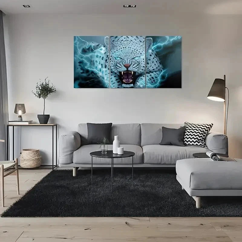 3pcs Vibrant Blue & Purple Leopard Metal Print Ready to Hang Art
