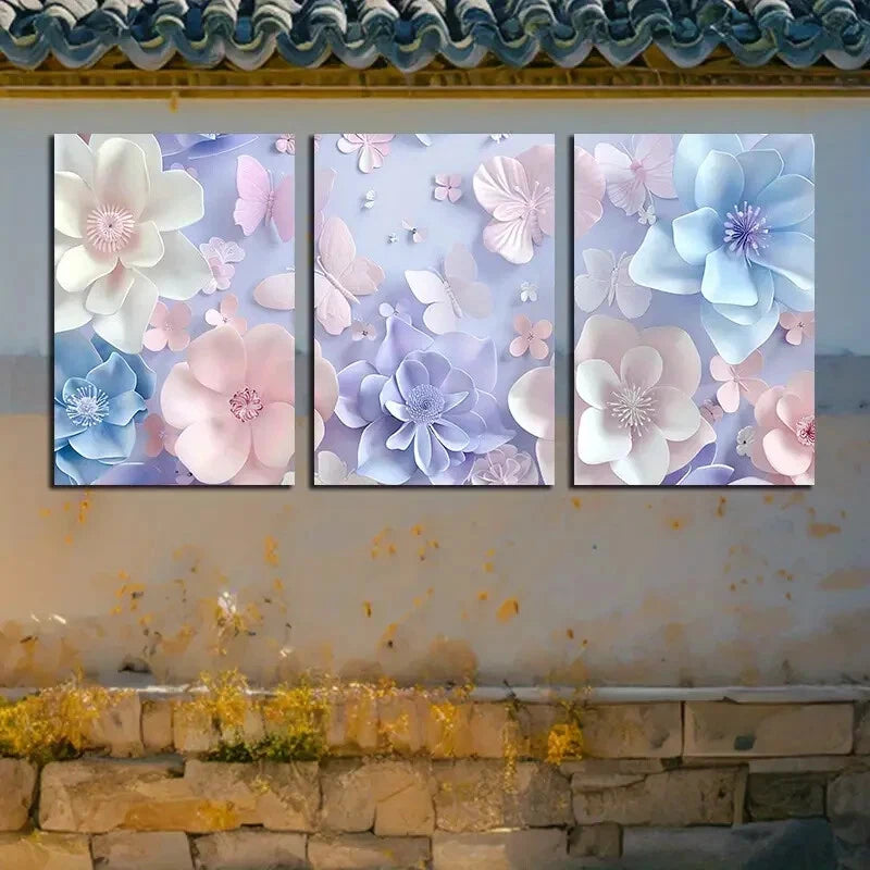3pcs Vibrant Butterflies and Flowers Illustration Metal Print Ready to Hang Art