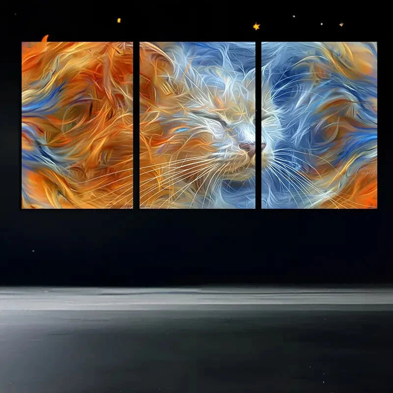3pcs Vibrant cat Abstract Illustration Metal Print Ready to Hang Art
