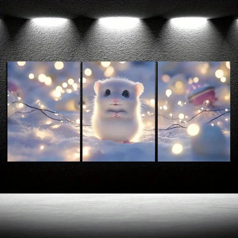 3pcs Vibrant Colourful Charming Hamster Trio Metal Print Ready to Hang Art