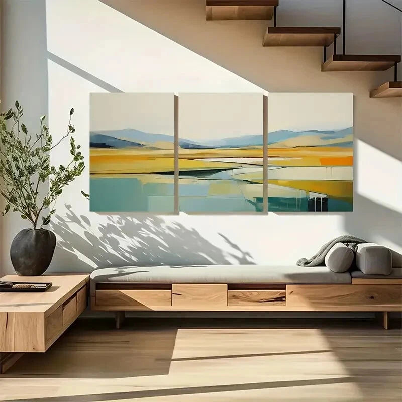 3pcs Vibrant Yellow Blue & Green Gradient Metal Print Ready to Hang Art