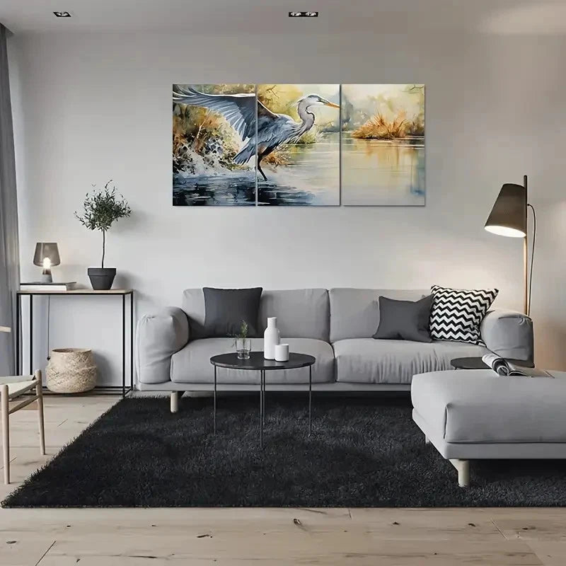 3pcs Watercolor Heron in Flight Metal Print Ready to Hang Art