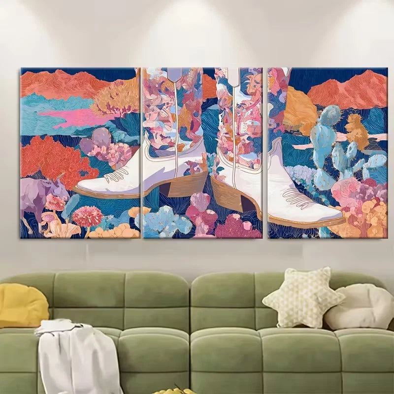3pcs Western Painting, Preppy Cowgirl Aesthetic Metal Print Ready to Hang Art