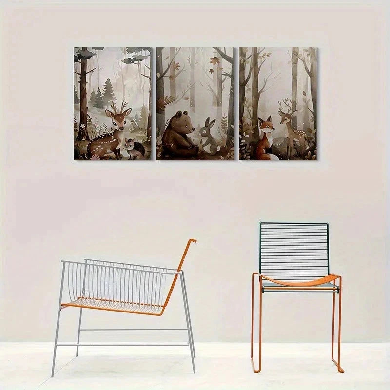 3pcs Whimsical Forest Cute Animal Family Metal Print Ready to Hang Art