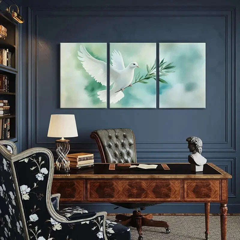 3pcs White Dove Olive Branch Peace Symbol Metal Print Ready to Hang Art