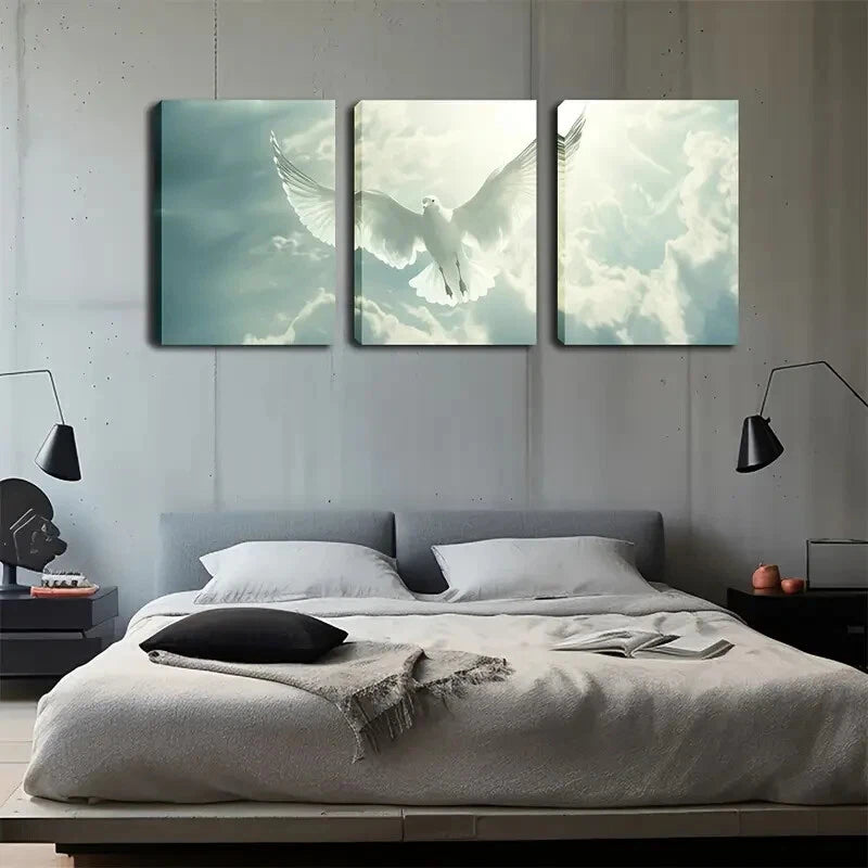 3pcs White Doves Flying Scenes Simple Perfect Wall Art Set Canvas Framed 40x60cm - High Quality Print 100% Australian Made Wall Canvas Ready to Hang