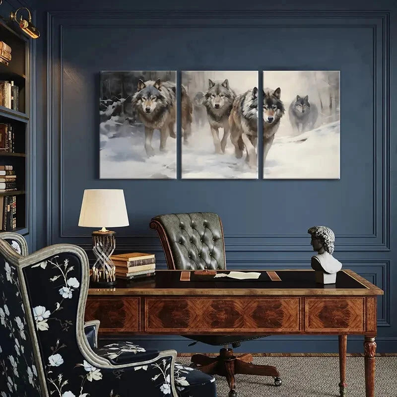 3pcs Wolf Pack Winter Scene Snowy Landscape Metal Print Ready to Hang Art