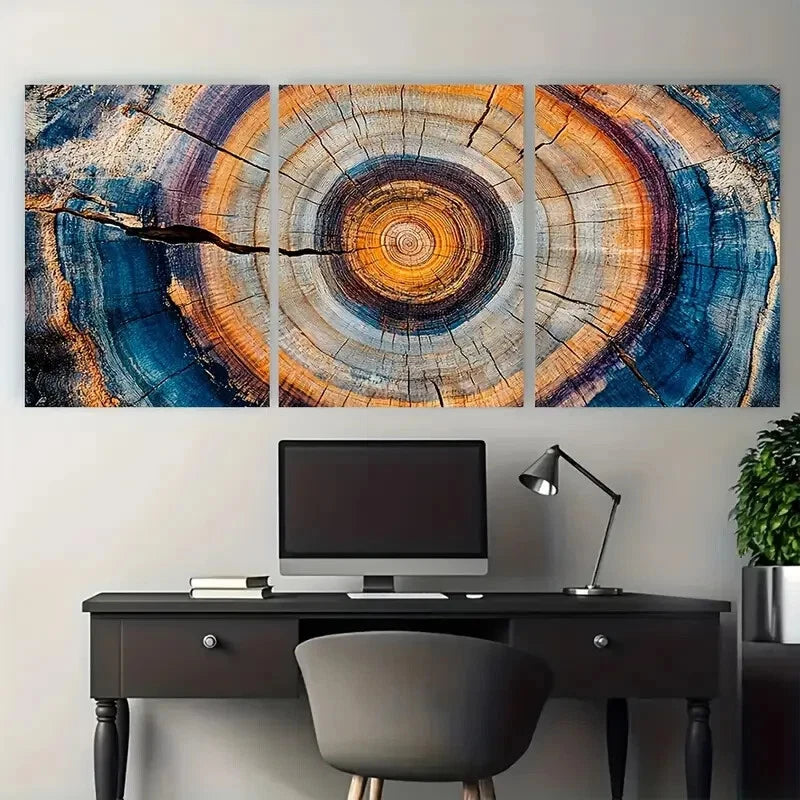3pcs Wood Tree Rings Illustration Metal Print Ready to Hang Art