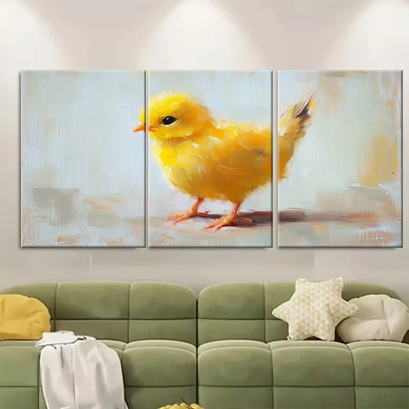 3pcs Yellow Chick Oil Painting Farm Animals Metal Print Ready to Hang Art