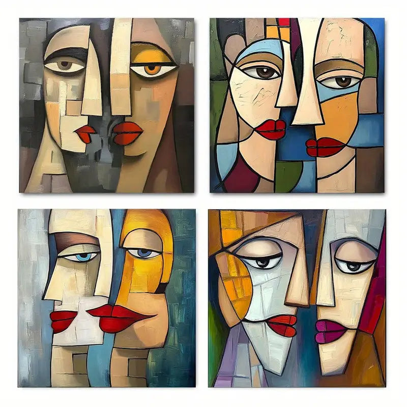 4pcs Abstract Cubist Face Wall Art Canvas Framed