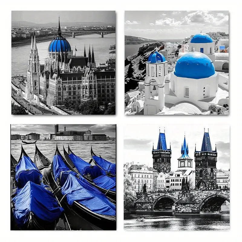 4pcs Black and gray beach Wall Art Canvas Framed