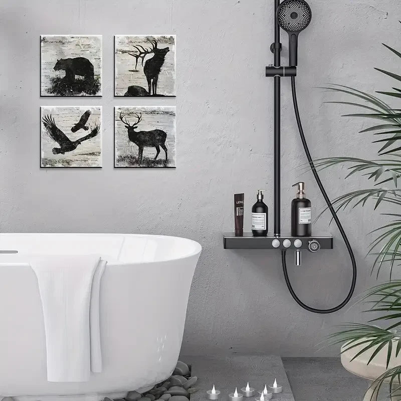 4pcs Black Bear Deer Moose Elk, Wall Art Canvas Framed