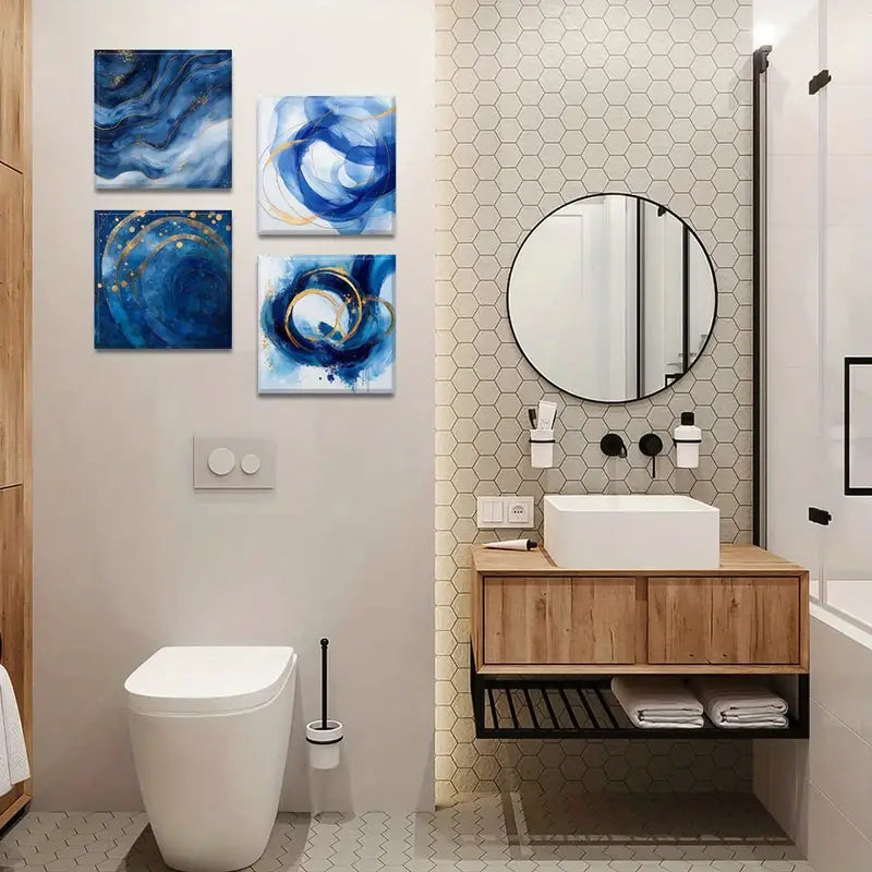 4pcs Blue and Golden Swirls Wall Art Canvas Framed