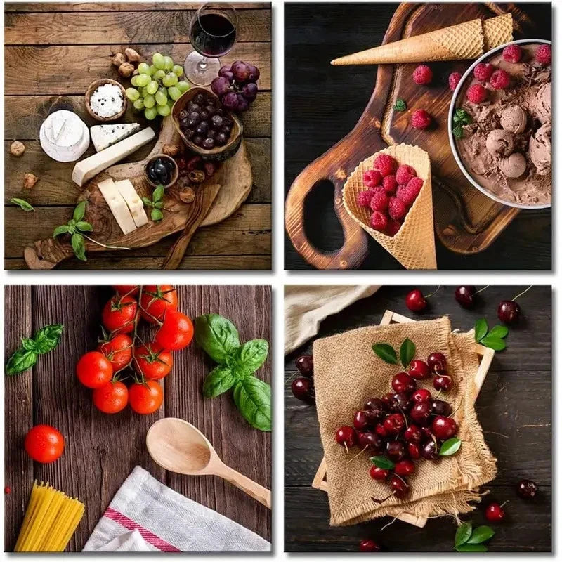 4pcs Colorful Fruit Wall Art Canvas Framed
