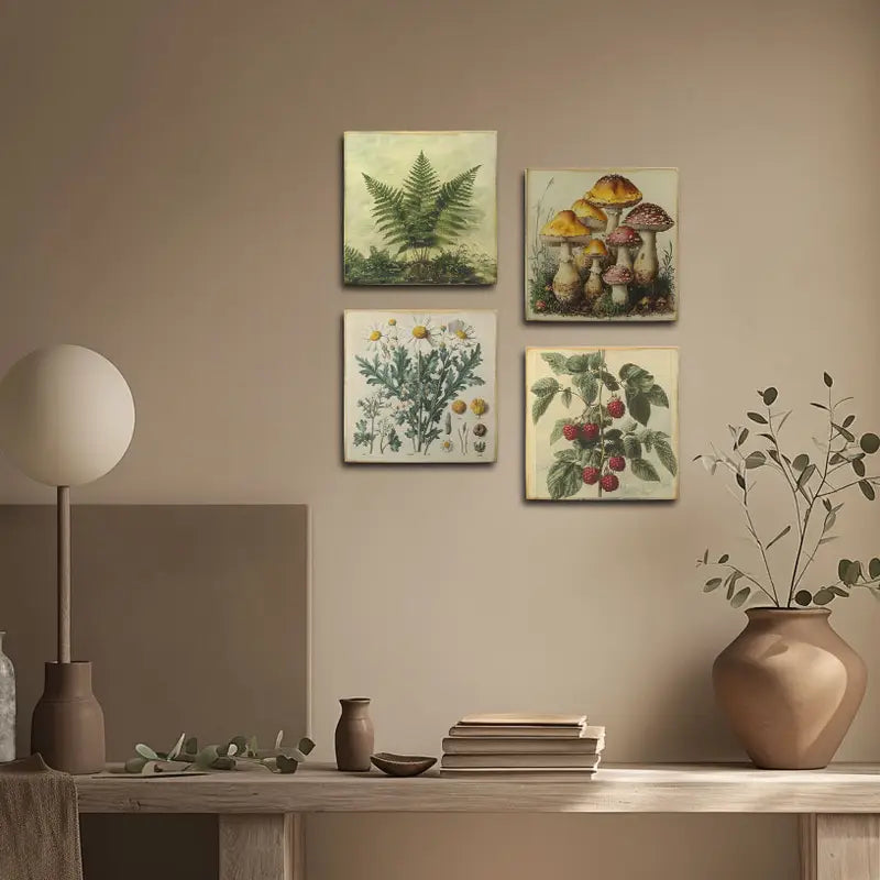 4pcs Farmhouse Decoration Summer,Mushroom Wall Art Canvas Framed