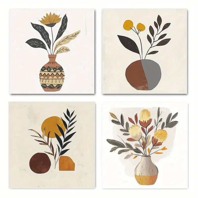 4pcs Flower Bouquet Boho Floral Wall Art Canvas Framed
