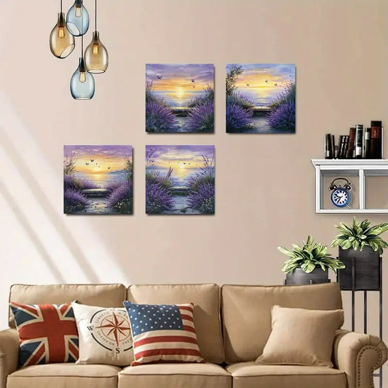 4pcs Lavender Sunset Coast Elegant Wall Art Canvas Framed