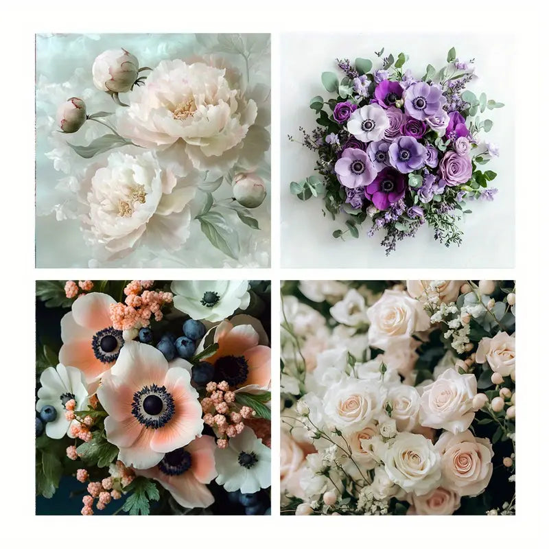 4pcs Peony & Rose Petal Canvas Prints Wall Art Canvas Framed