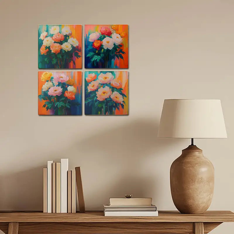4pcs Soft Pink Flower Bouquet Wall Art Canvas Framed