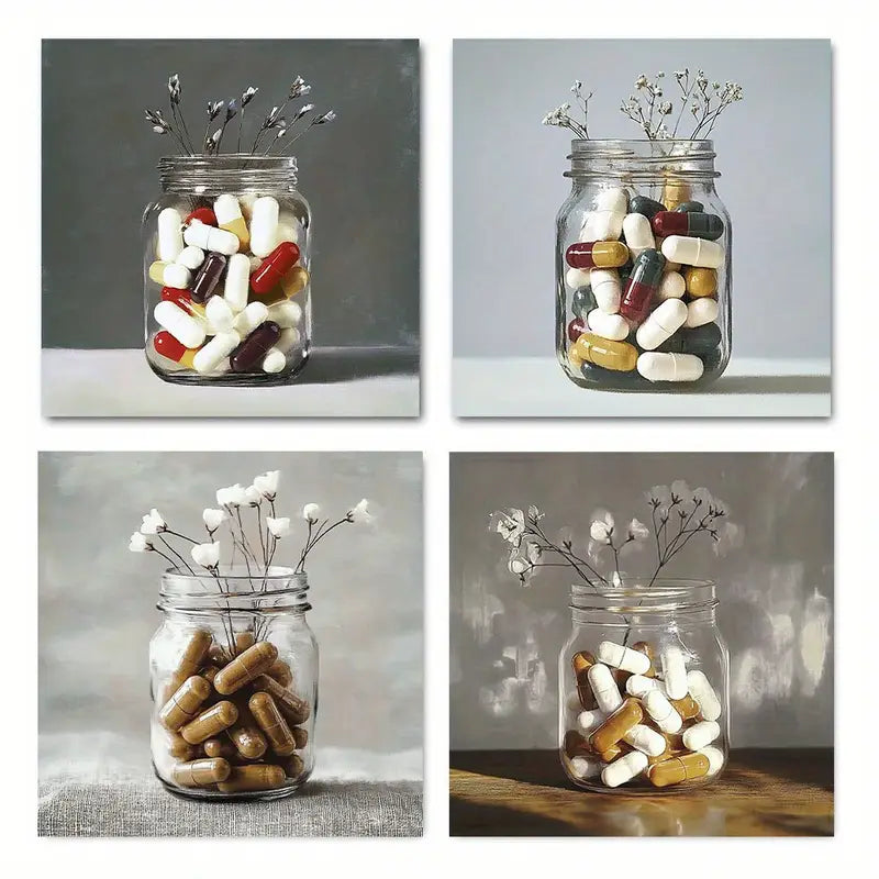 4pcs Vibrant Bouquet Themed Home Decor Wall Art Canvas Framed
