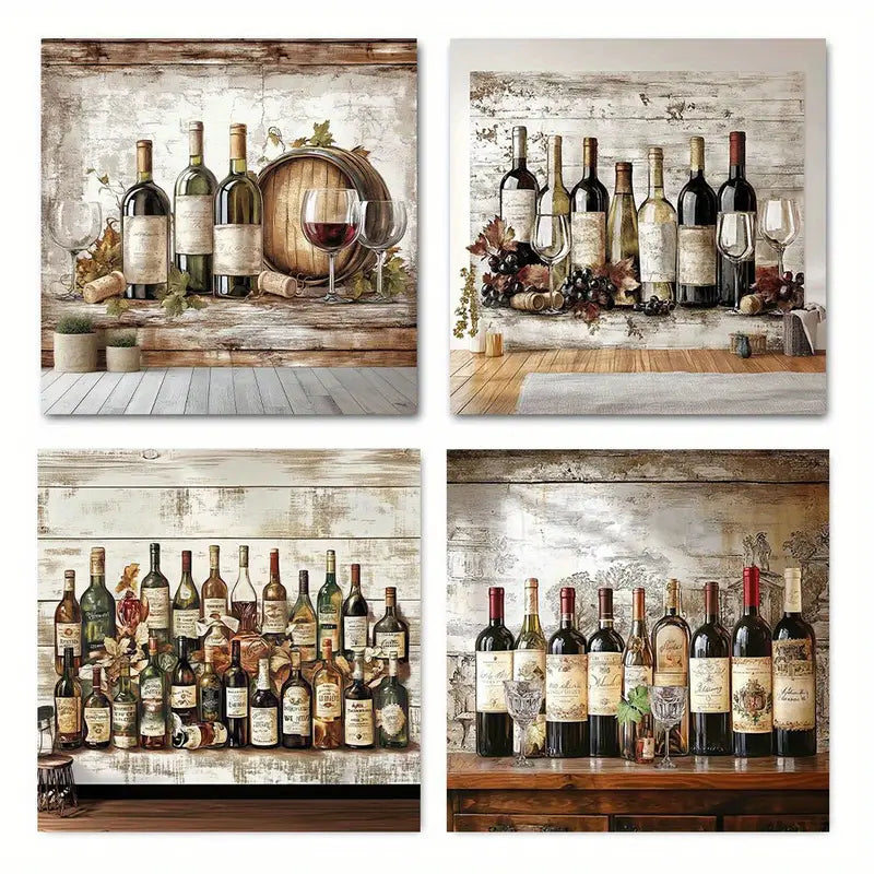 4pcs Vintage Kitchen Picture Wall Art Canvas Framed