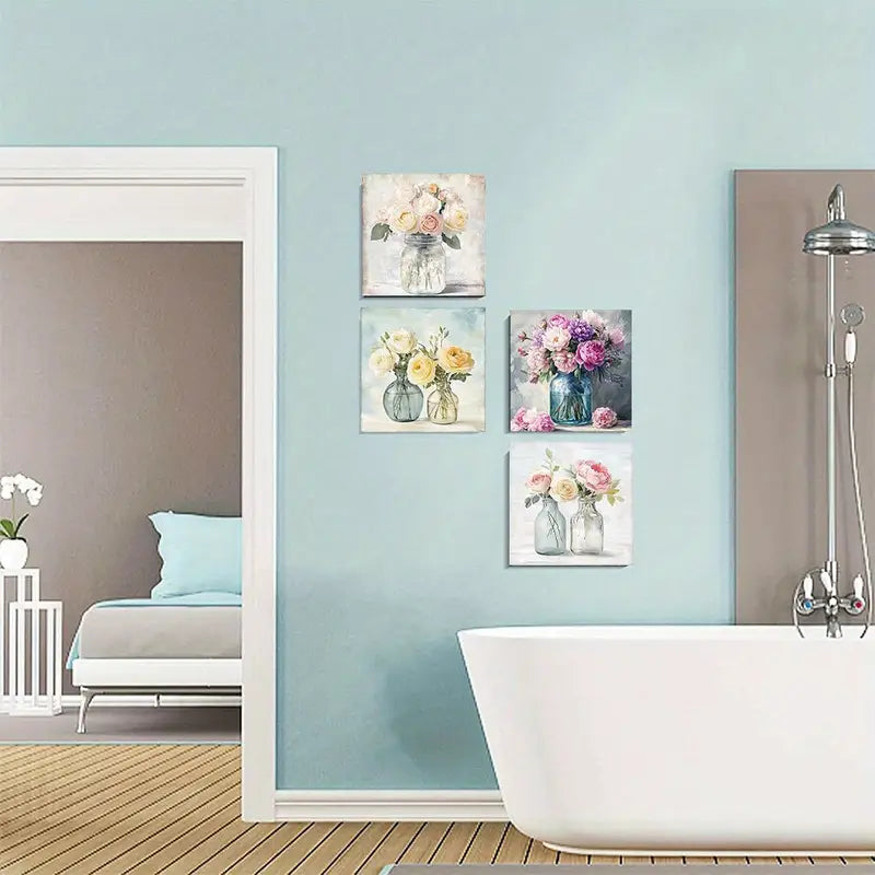 4pcs Watercolor Mason Jar Floral WMJ Wall Art Canvas Framed