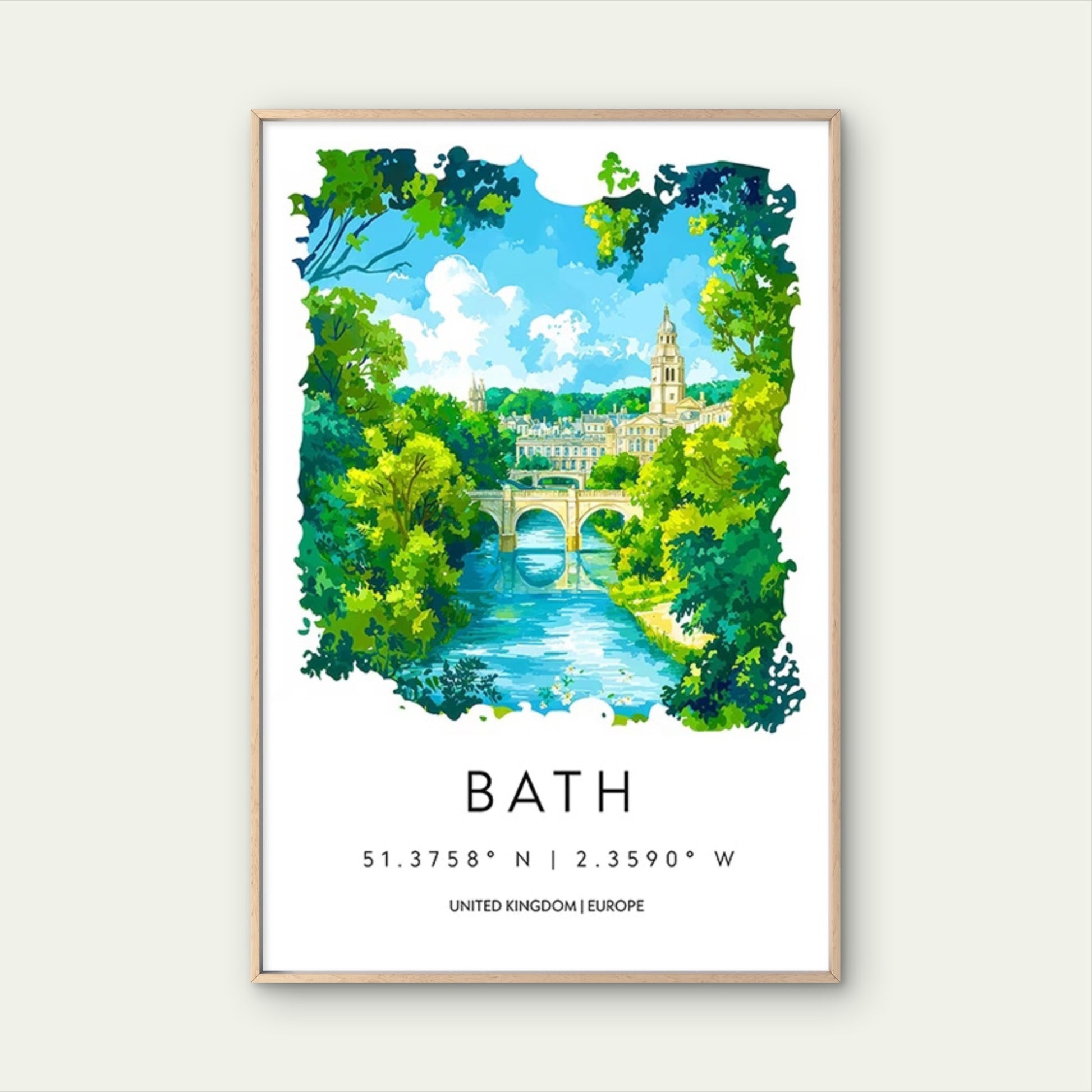 A Watercolor View Of The Beautiful City Of Bath Travel Poster Print Wall Art