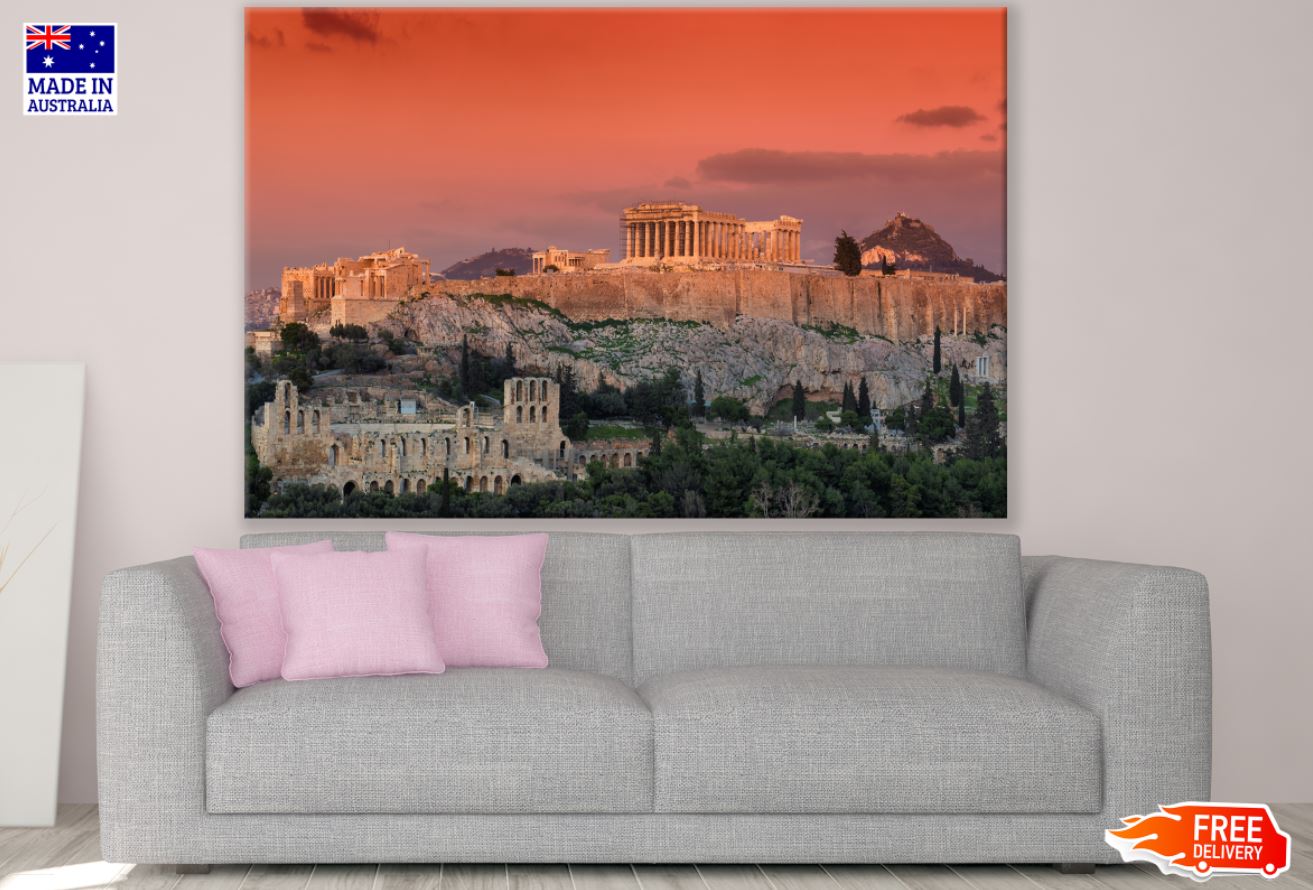Ancient Buildings Sunset Scenery Print 100% Australian Made