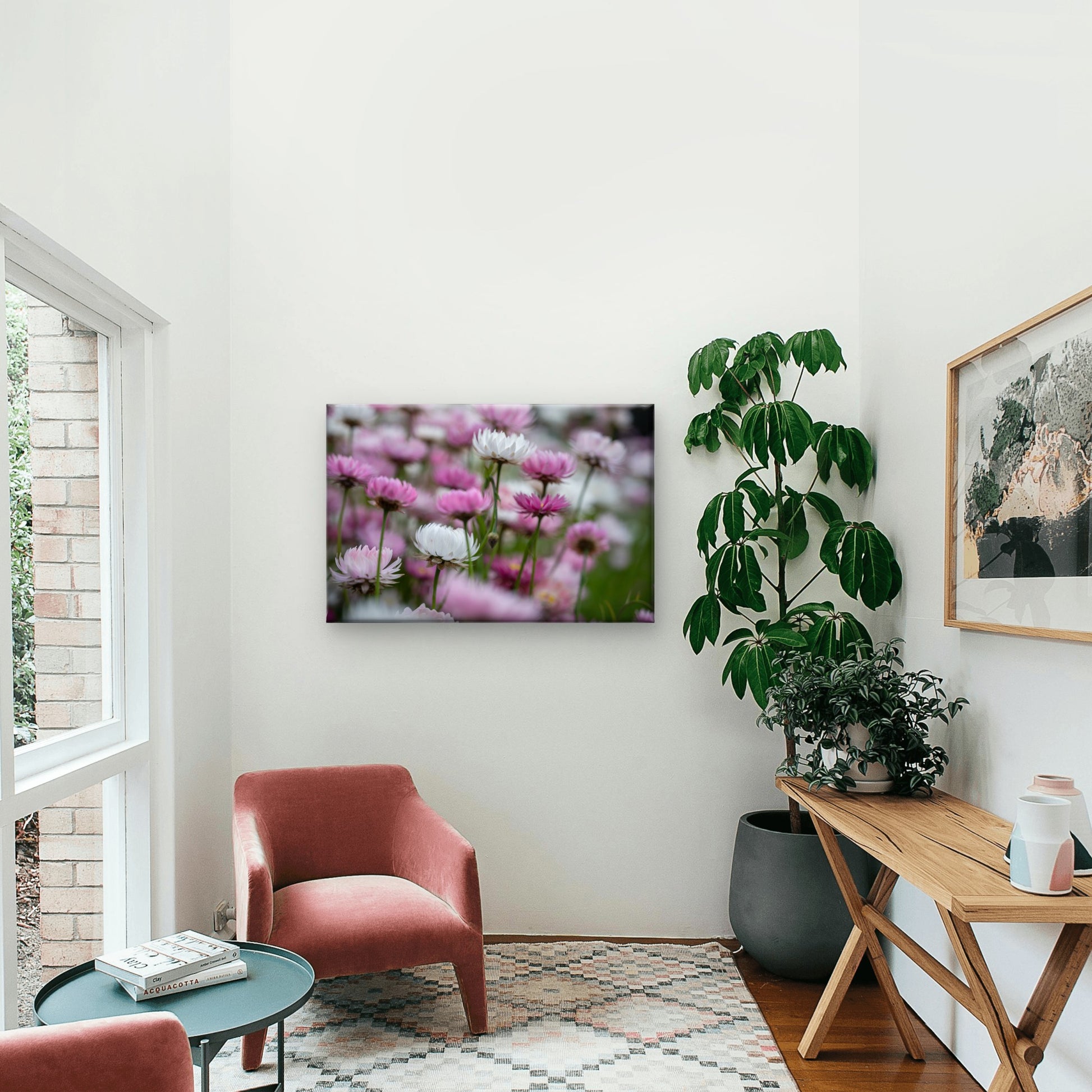 Brighten your walls with the soft, dreamy beauty of Australian pink and white paper daisies. This vibrant floral wall art decor brings springtime energy and natural charm into your home, creating a warm and uplifting atmosphere. Crafted with premium Australian quality.