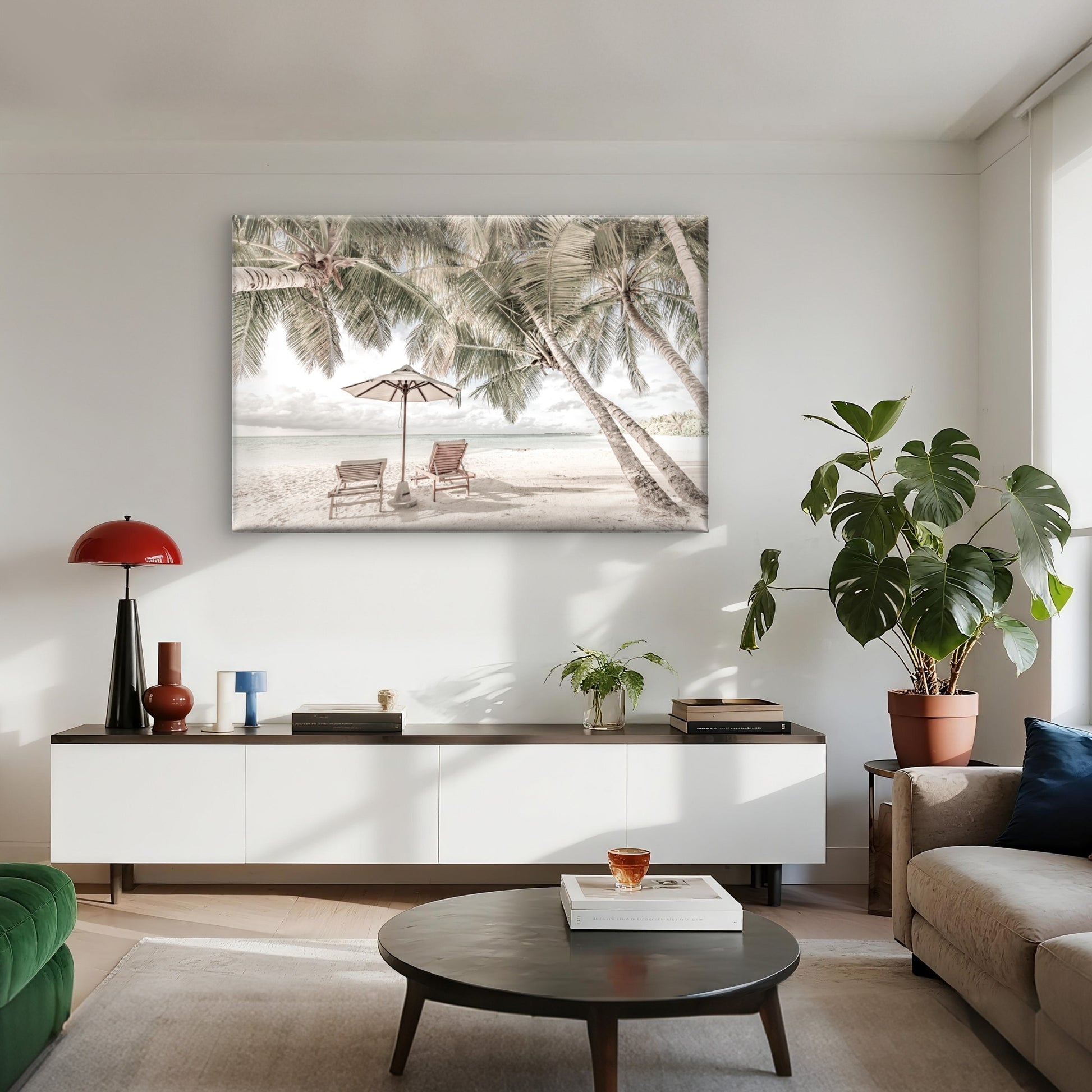 Beach Huts & Plam Trees Sea View Print 100% Australian Made