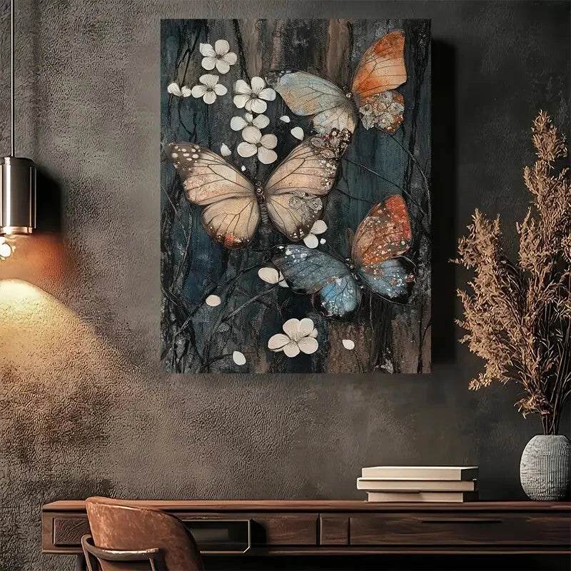 Beautiful Butterfly Garden Modern Vintage Painting 40x60cm Metal Print Ready to Hang
