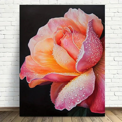 Beautiful Rainbow Rose Dew Drops Modern Painting 40x60cm Metal Print Ready to Hang
