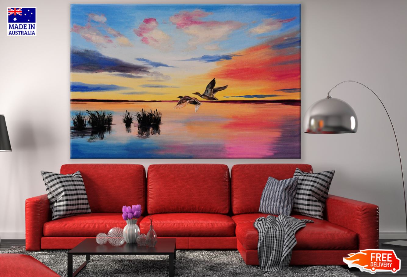 Bird & Sunset Sky Oil Painting Print 100% Australian Made