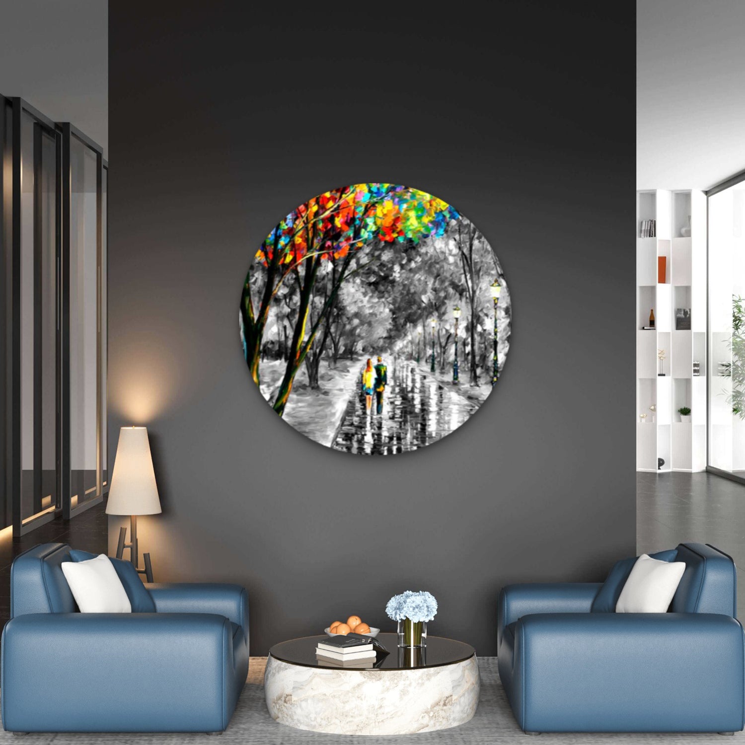 Black And White Couple Night Street Acrylic Glass Rounded Print Tempered Glass Wall Art 100% Made in Australia Ready to Hang