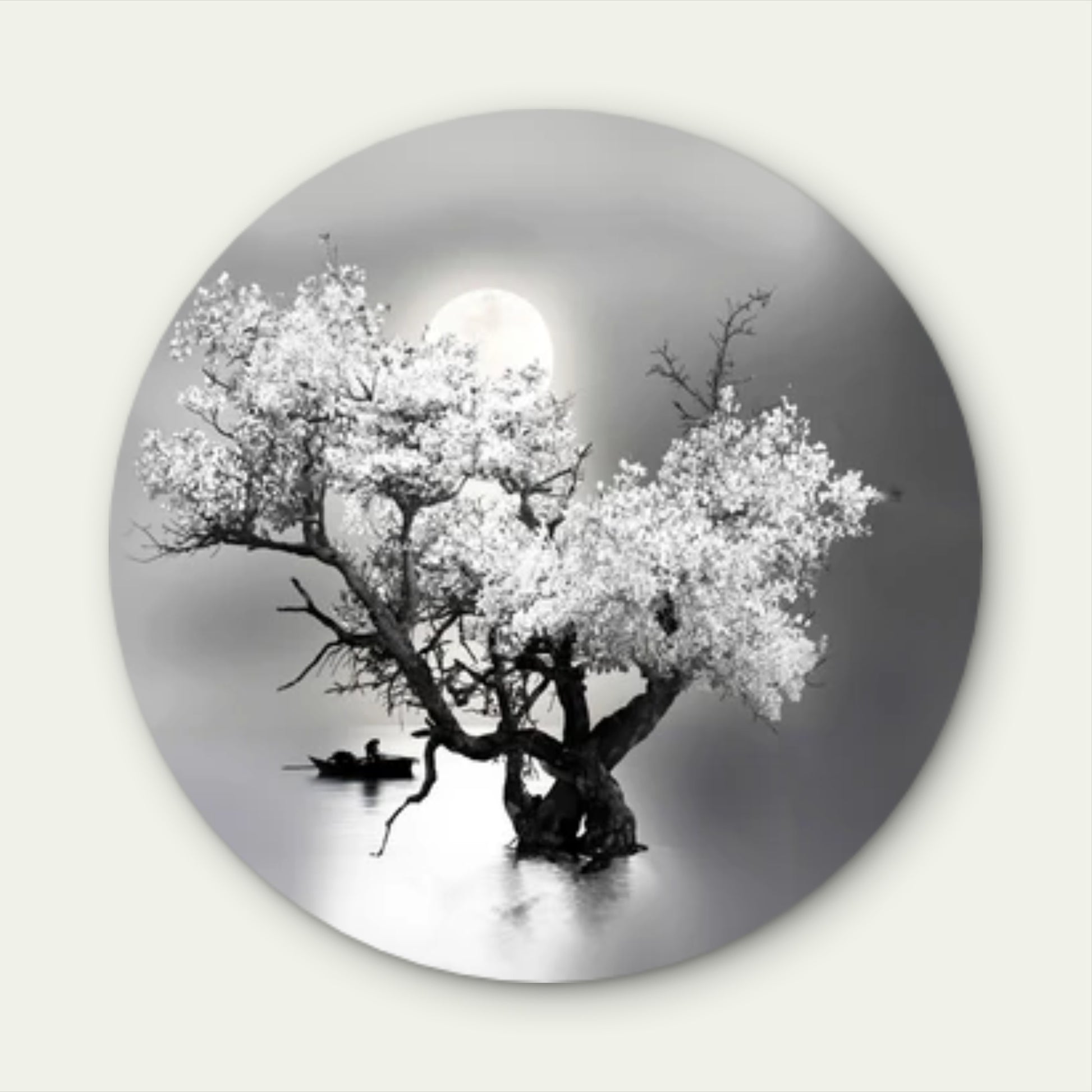 Black And White Lake Night Moon Sky Acrylic Glass Rounded Print Tempered Glass Wall Art 100% Made in Australia Ready to Hang