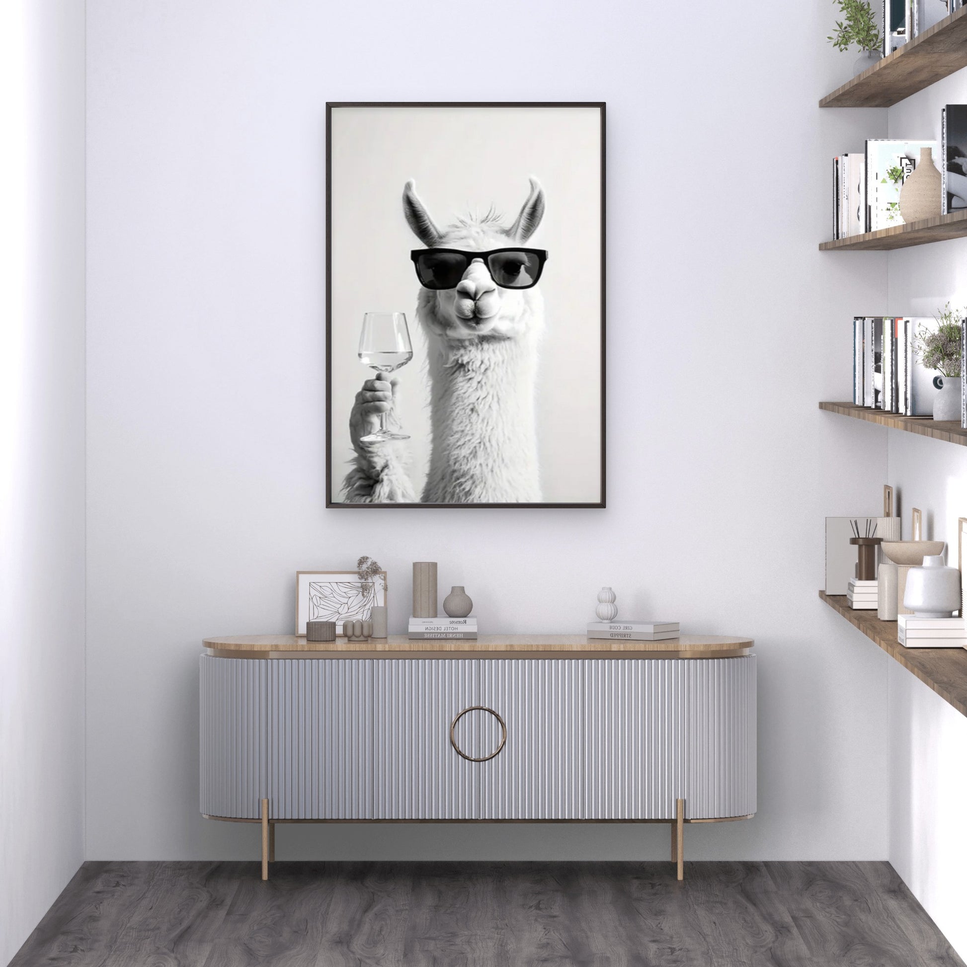 Black Shades Minimalist Llama with Trendy Glasses Fashion Home Decor Premium Quality Poster Print Choose Your Sizes