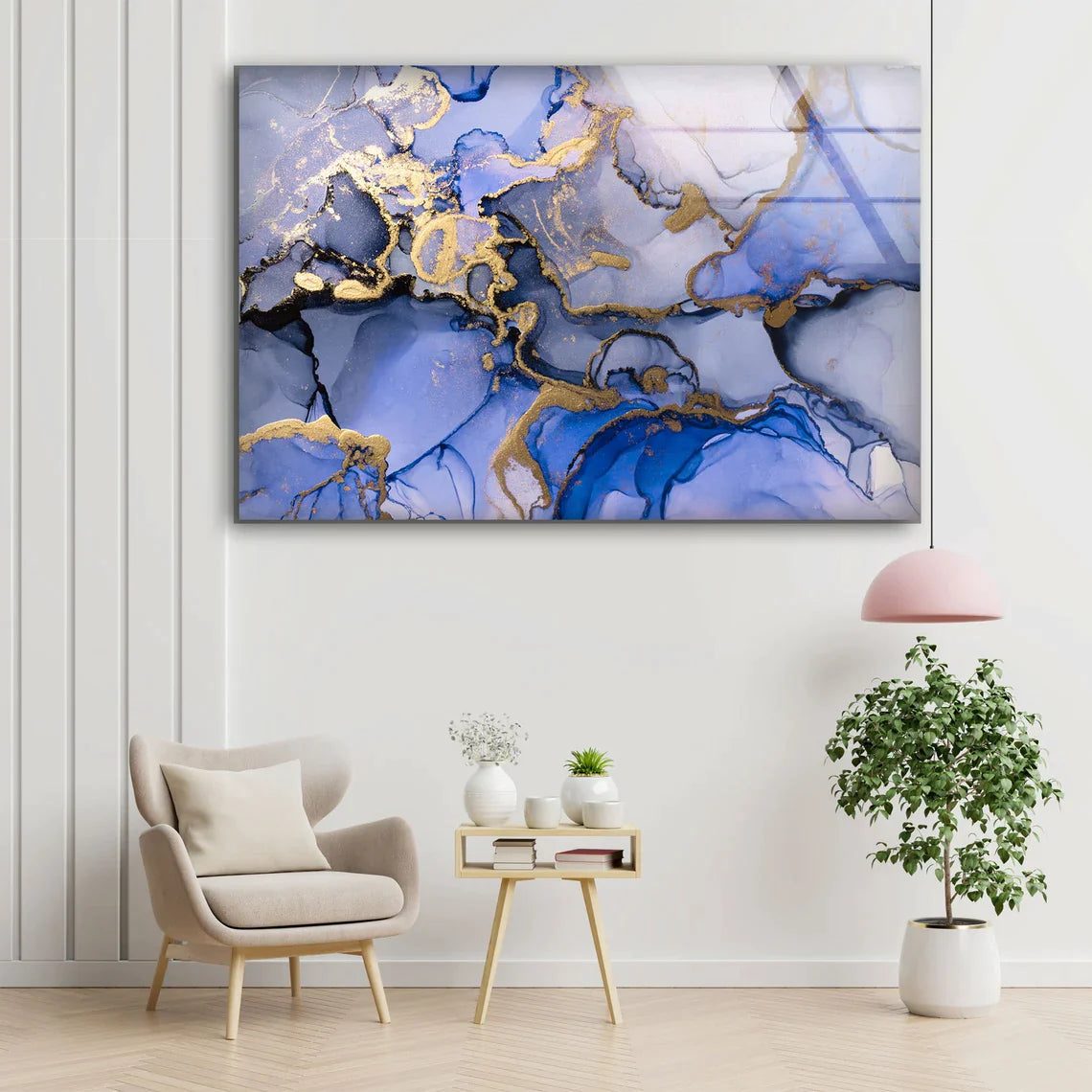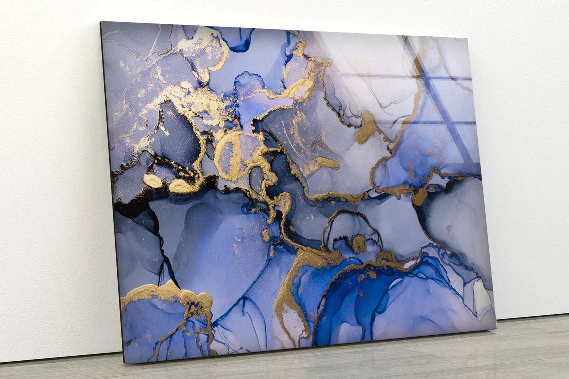 Blue & Gold Abstract UV Direct Aluminum Print Australian Made Quality