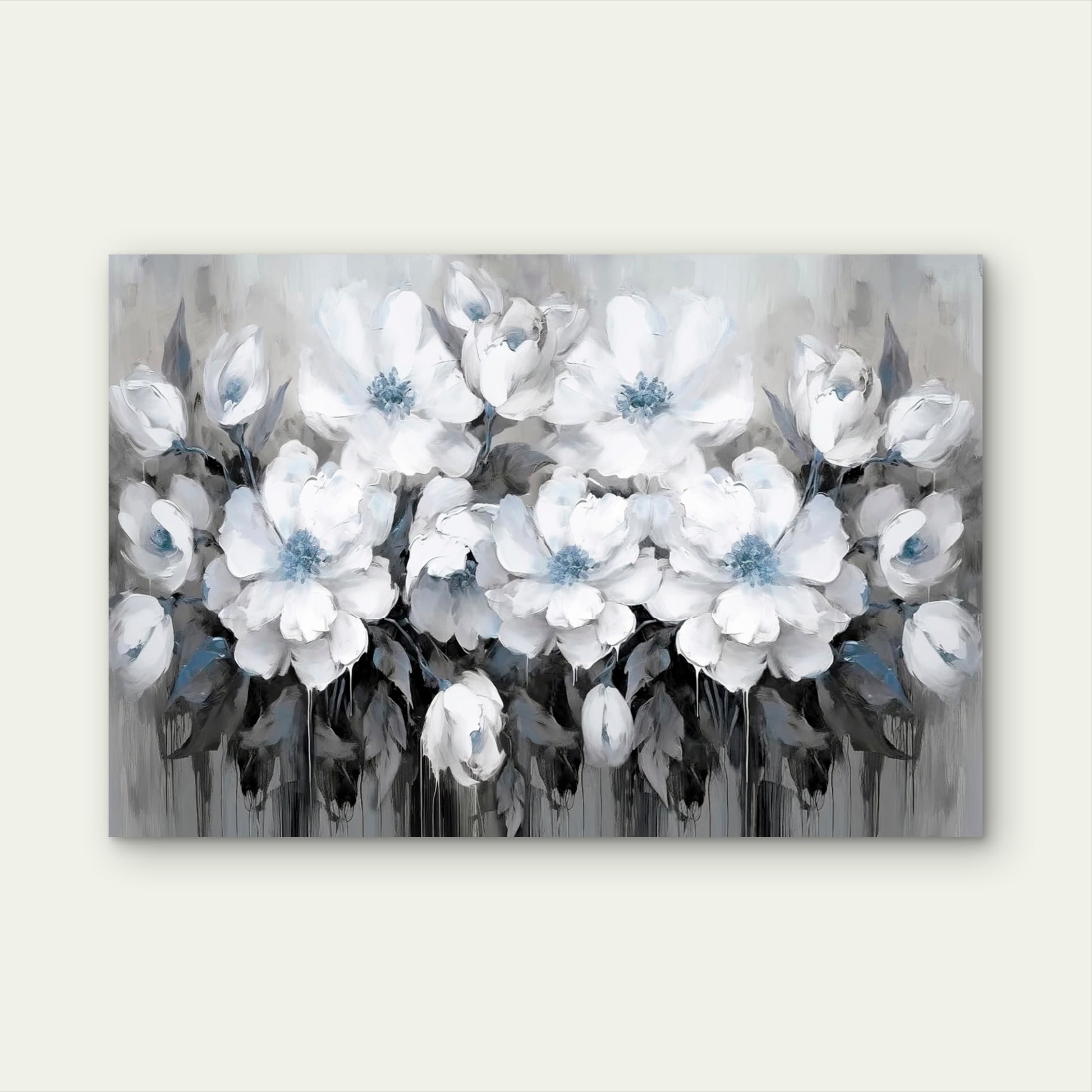 Blue Toned White Flowers Black and White Wall Art Decor 100% Australian Made