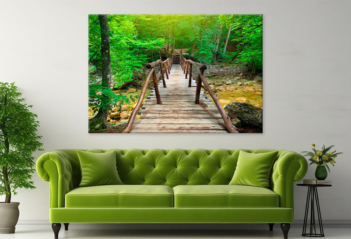 Bridge in Bright Forest, Natural Wall Art Decor 100% Australian Made