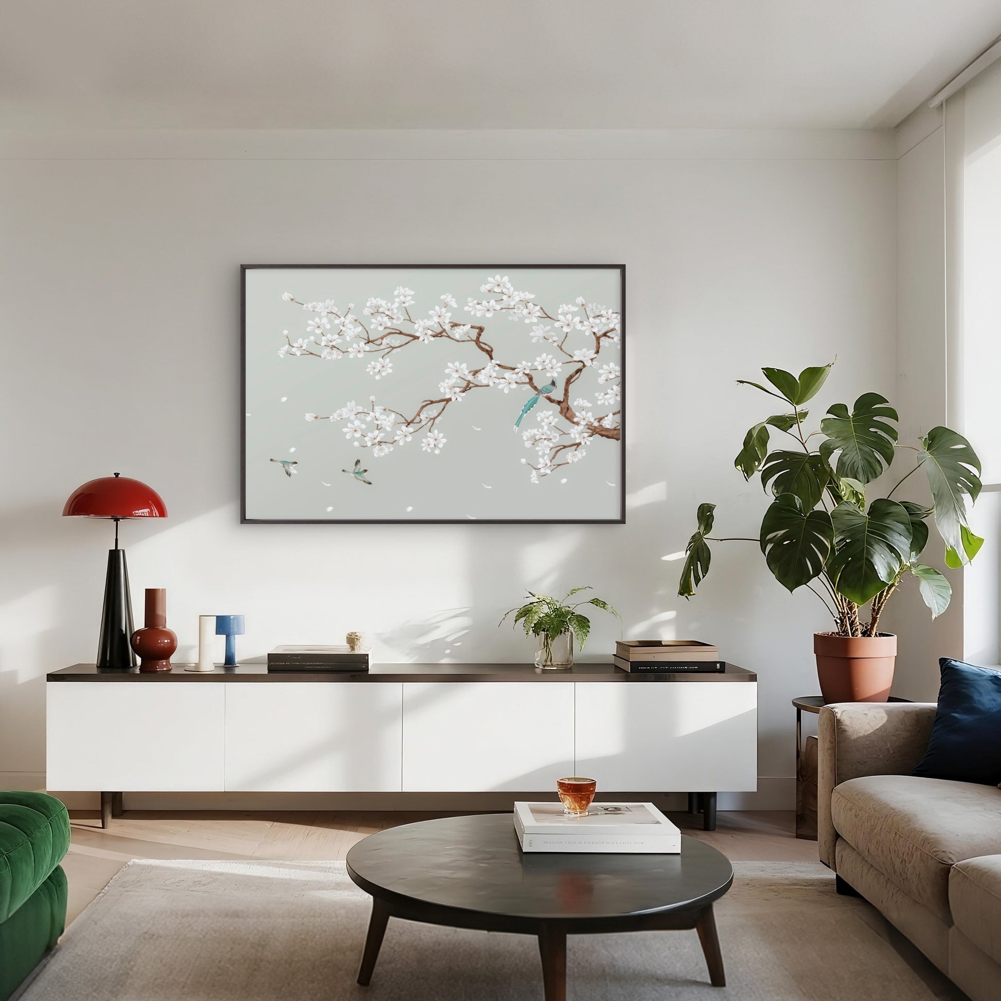 Chinoiserie Style Blooming Magnolia Tree Branch and Songbirds Wall Art Decor 100% Australian Made