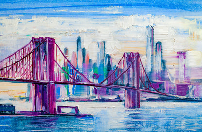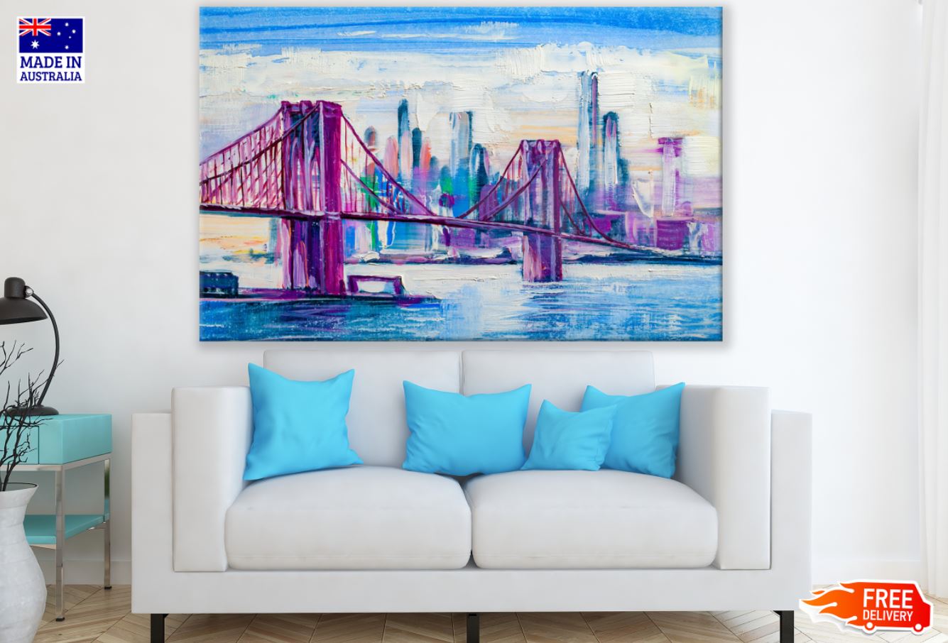 Colorful City Bridge Oil Painting Print 100% Australian Made