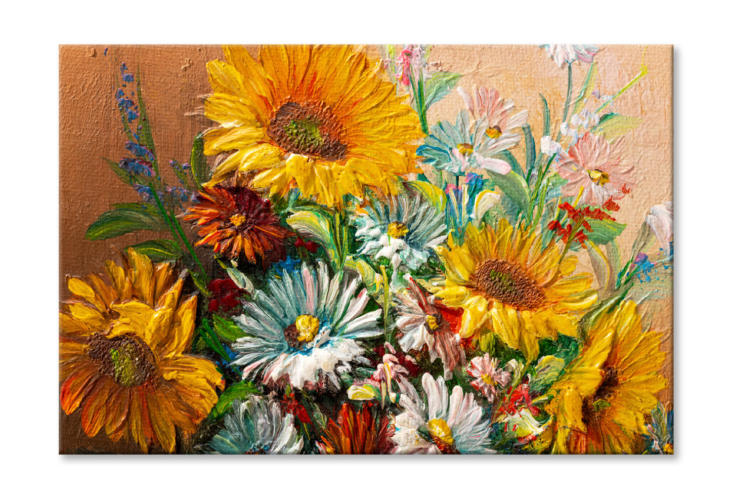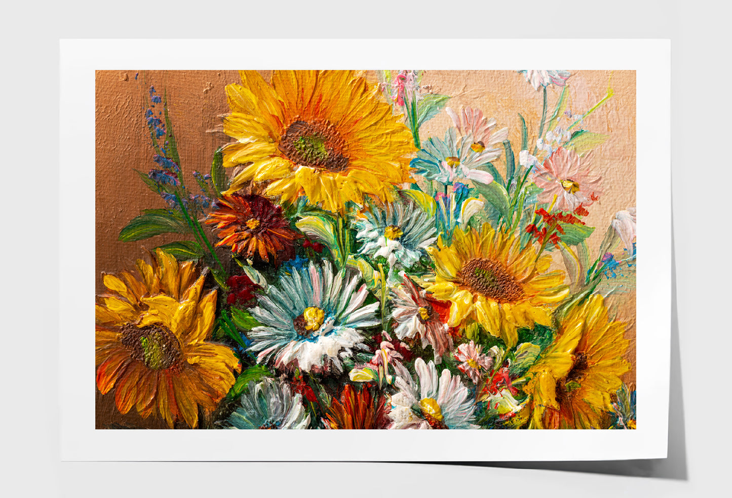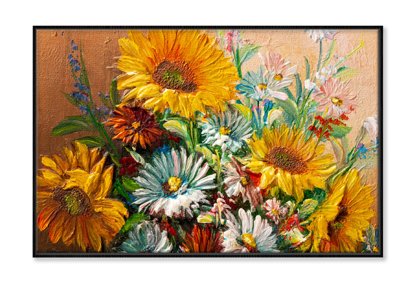 Colorful Flowers with Leaves Closeup Oil Painting Wall Art Limited Edition High Quality Print